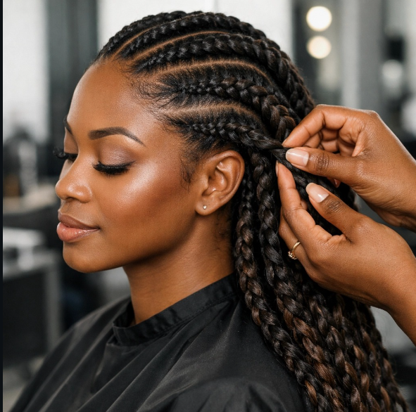Explore our stunning braids, including box braids, ponytail braids, and goddess braids.